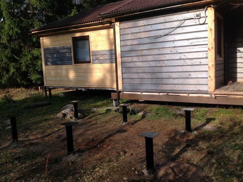 Винтовой фундамент под постройку на неровной поверхности – оптимальный выбор. Мы используем сваи разной длины, чтобы вывести уровень под ноль.