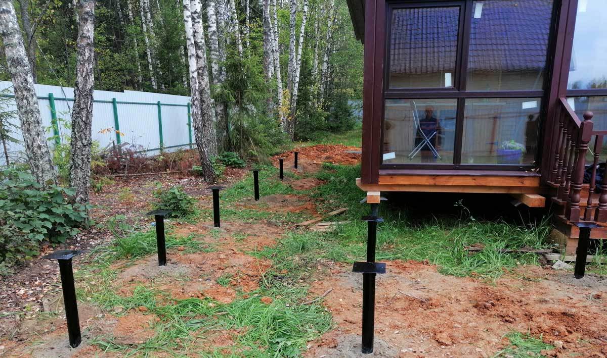 Комплект свай для свайно-винтового фундамента вкручивают вручную или при помощи спецтехники в размеченных местах.
